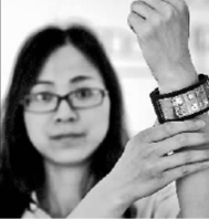 5月17日,具有完全自主知識(shí)產(chǎn)權(quán)的維信諾(固安)第六代全柔AMOLED(有源矩陣有機(jī)發(fā)光二極體面板)生產(chǎn)線(xiàn),在河北固安啟動(dòng)運(yùn)行。圖為工作人員在展示一款柔性顯示智能可穿戴手機(jī)。新華社發(fā)